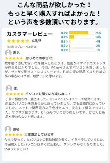 実際にPC nextを利用したユーザーからは、どのような声が上がっているのでしょうか。